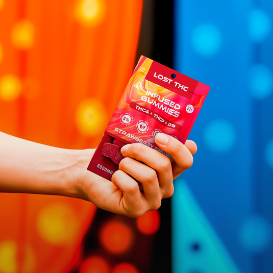Lost-THC makes premium gummies in various strengths and flavors. Their product line includes 1000mg 2-packs and high-strength 5000mg 10-packs. Their special infusion process spreads cannabinoids evenly throughout each gummy. Popular flavors include Blue Razz, Pineapple Burst, Sour Grape, Rainbow Sours, and Strawberry Crush.